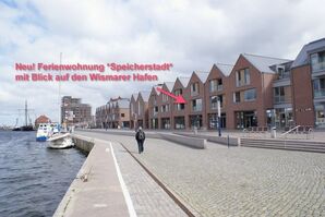 Die Ferienwohnung SPEICHERSTADT in Wismar befindet sich direkt im Hafenbereich und hat Wasserblick.